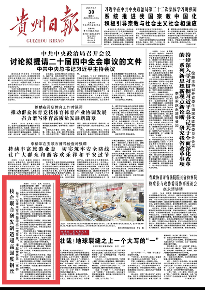 貴州日報(bào):校企聯(lián)合研發(fā)制造超高強(qiáng)度鋼絲每平方毫米可承受零點(diǎn)二噸重量,撐起世界第一高橋